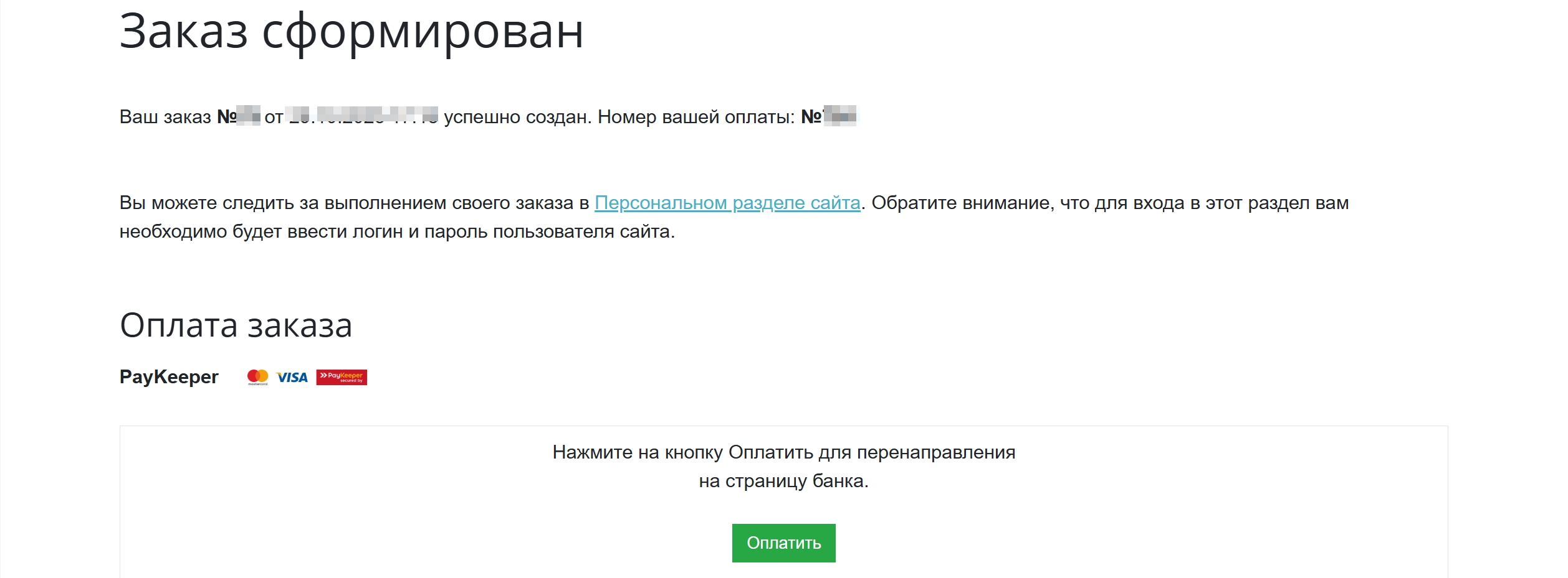 5.1. Покупатель оформляет заказ на сайте, выбрав способ оплаты с обработчиком PayKeeper.